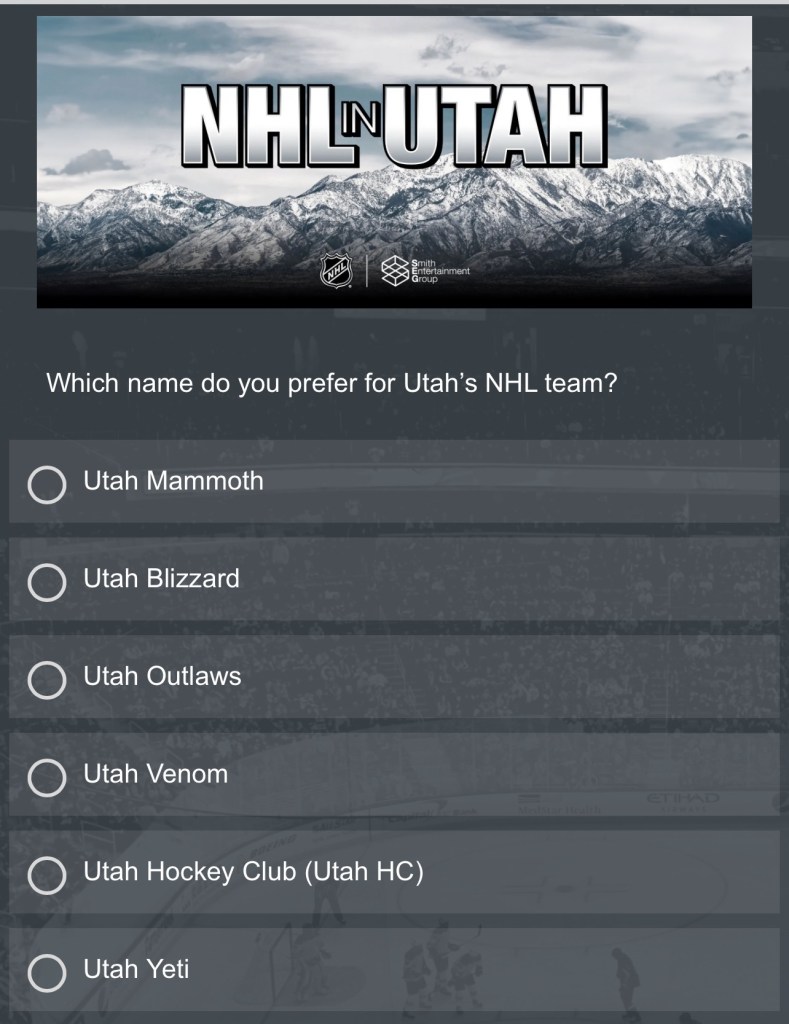 Ryan Smith the owner of the Smith Entertainment Group, the Utah Jazz, and the new NHL team in Utah, created a survey from his company Qualtrics for the future name of the team.